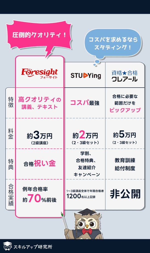 一方、できるだけ費用を抑えたい方には「スタディング」がおすすめです。