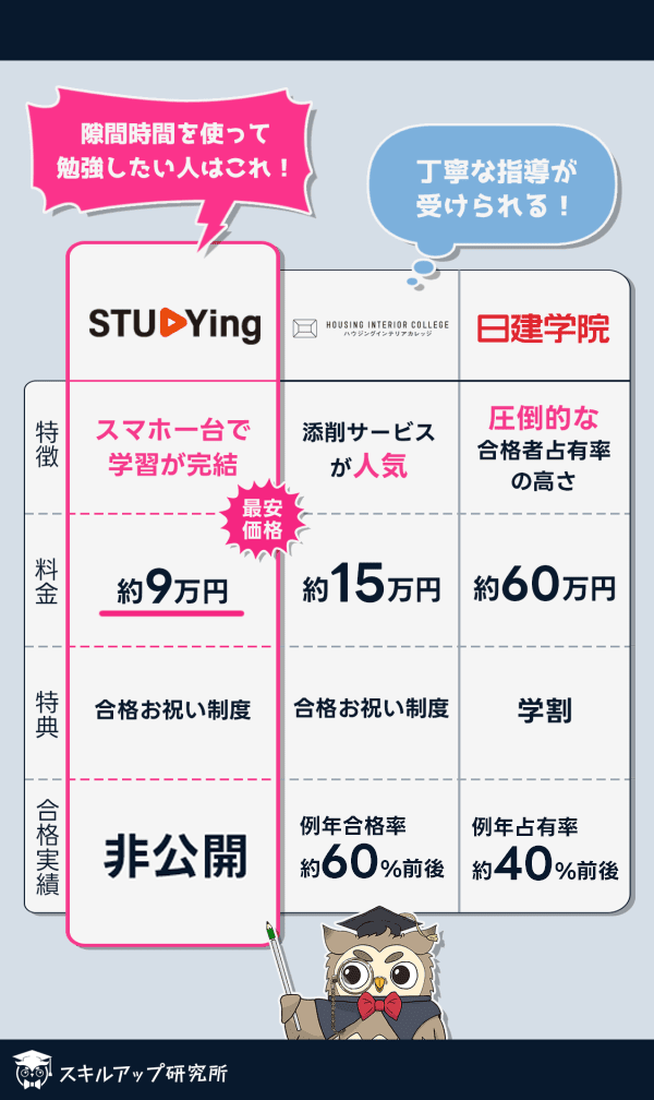 ◆合格率では「ハウジングインテリアカレッジ」もおすすめ