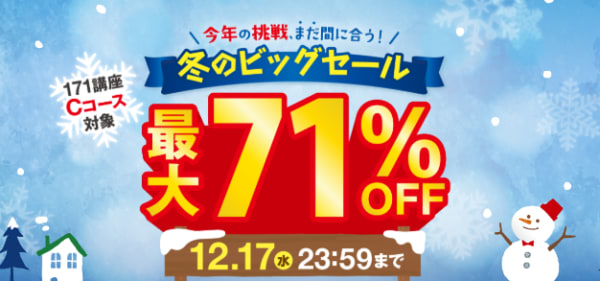 宅地建物取引士講座では、現在冬のビッグセールが開催中です。