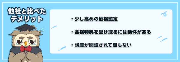 続いてアガルートの社会福祉士講座を、他社が提供する社会福祉士講座と比較したメリットとデメリットを見ていきます。まずは残念なポイントを解説します。
