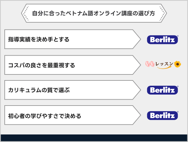 今回、9社のベトナム語講座を比較検証した結果、最もおすすめの講座は「ベルリッツ」です。