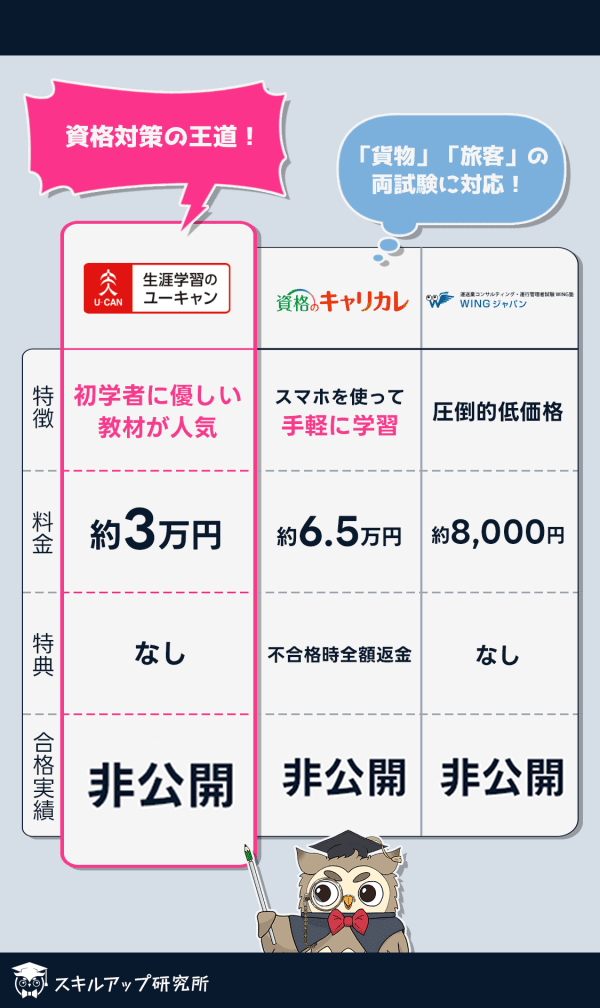 ただし、合格実績が不明な点や、「貨物」の試験にのみ対応している(「旅客」の試験には対応していない)点には注意が必要です。