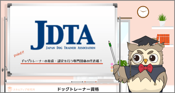 最も代表的な資格には、「日本ペットドッグトレーナーズ協会(JPDTA)」の認定ドッグトレーナー資格があります。