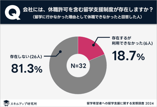 「休職できず留学断念」のうち81%は会社に支援制度が存在せず