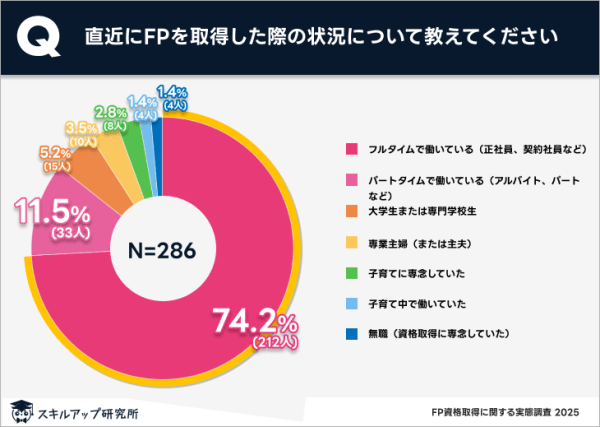 FP取得者の7割以上が取得時にフルタイムで働いている