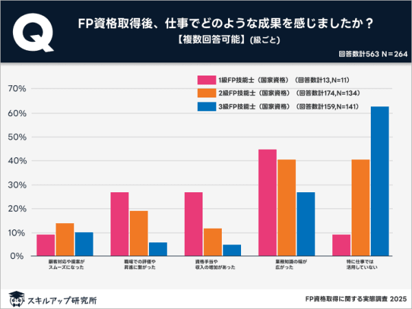 また、「業務知識の幅が広がった」と回答した割合も3級では27.0%だったのに対し、2級では41.8%、1級では45.5%と増加している。