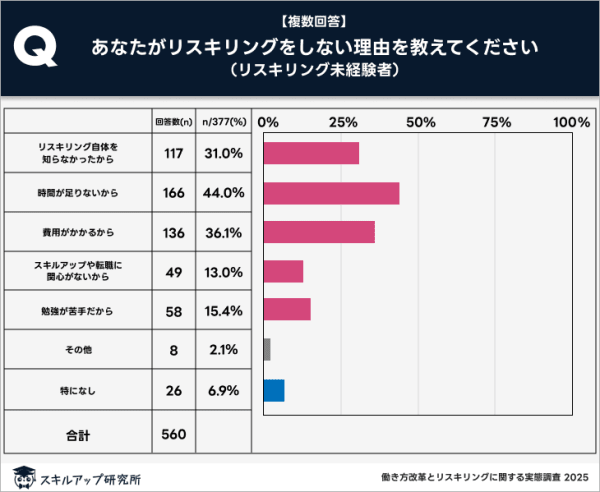 - 時間が足りないことがリスキリングをしない最大の理由