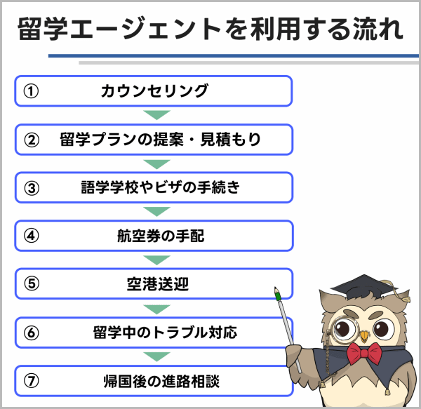 ここでは、カウンセリング予約から学校選び、手続き、出発、現地サポートまで、エージェントを活用する一連の流れをわかりやすくご紹介します。