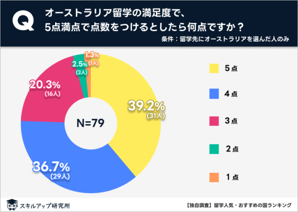 留学費用の安さ・コスパ | 4.87 | 料金体系がシンプルで、どの語学学校を選んでも同一価格で入学でき、他社より最大半額の費用に抑えることが可能である。 |