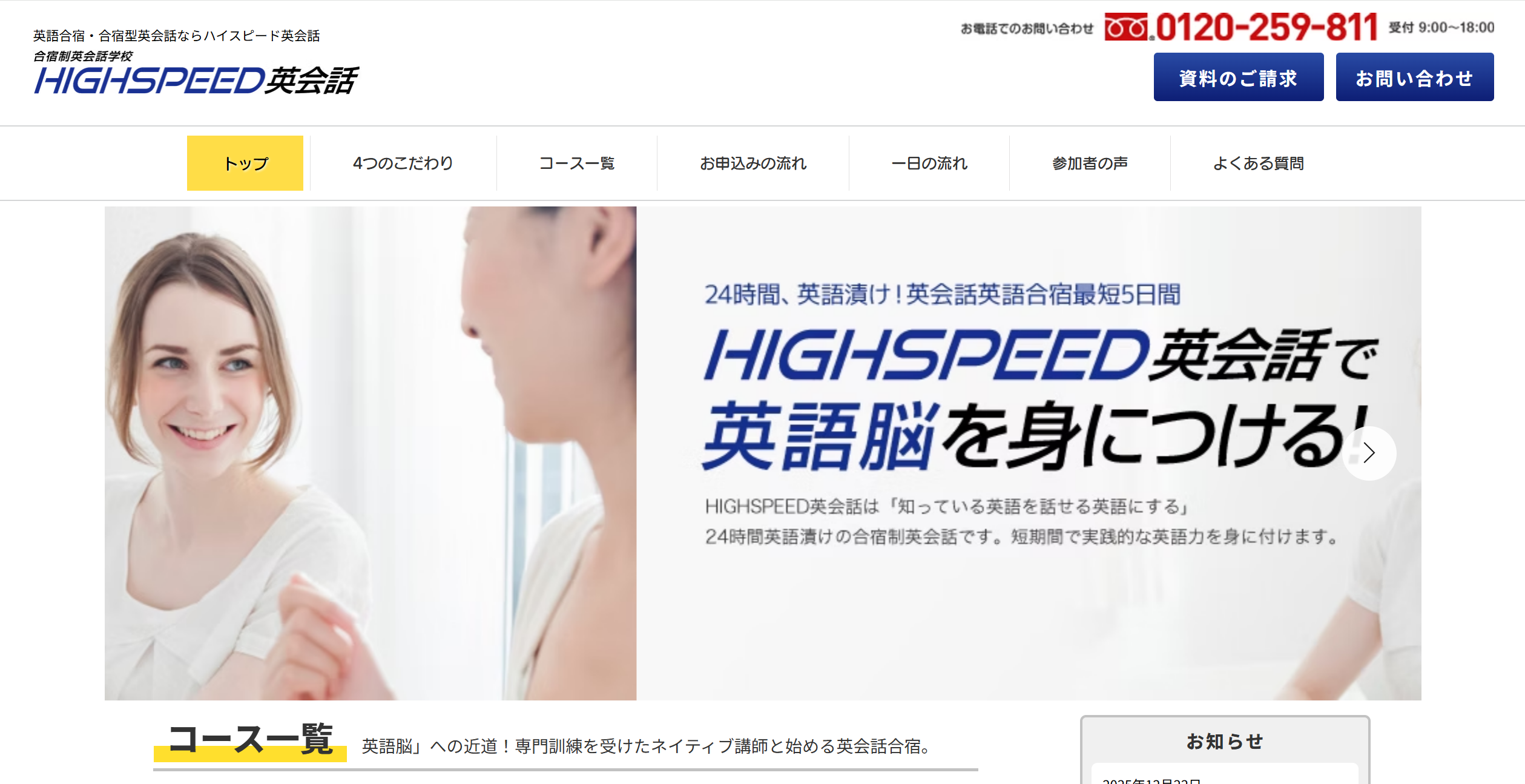 ハイスピード英会話 | 約6万〜8万円/5日 | 5日間程度 | ビジネス会話や瞬発力、度胸を鍛える |