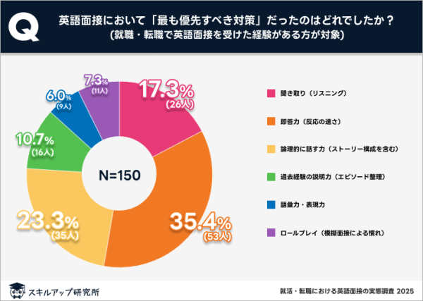 単に英語で話せるかどうかではなく、自身の経験を論理的に整理し、対話形式で伝える準備が不足していたと感じる人が多いことが分かる。