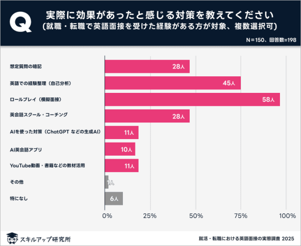 - 実際に効果があった英語面接対策トップは「模擬面接」で暗記型対策を上回る