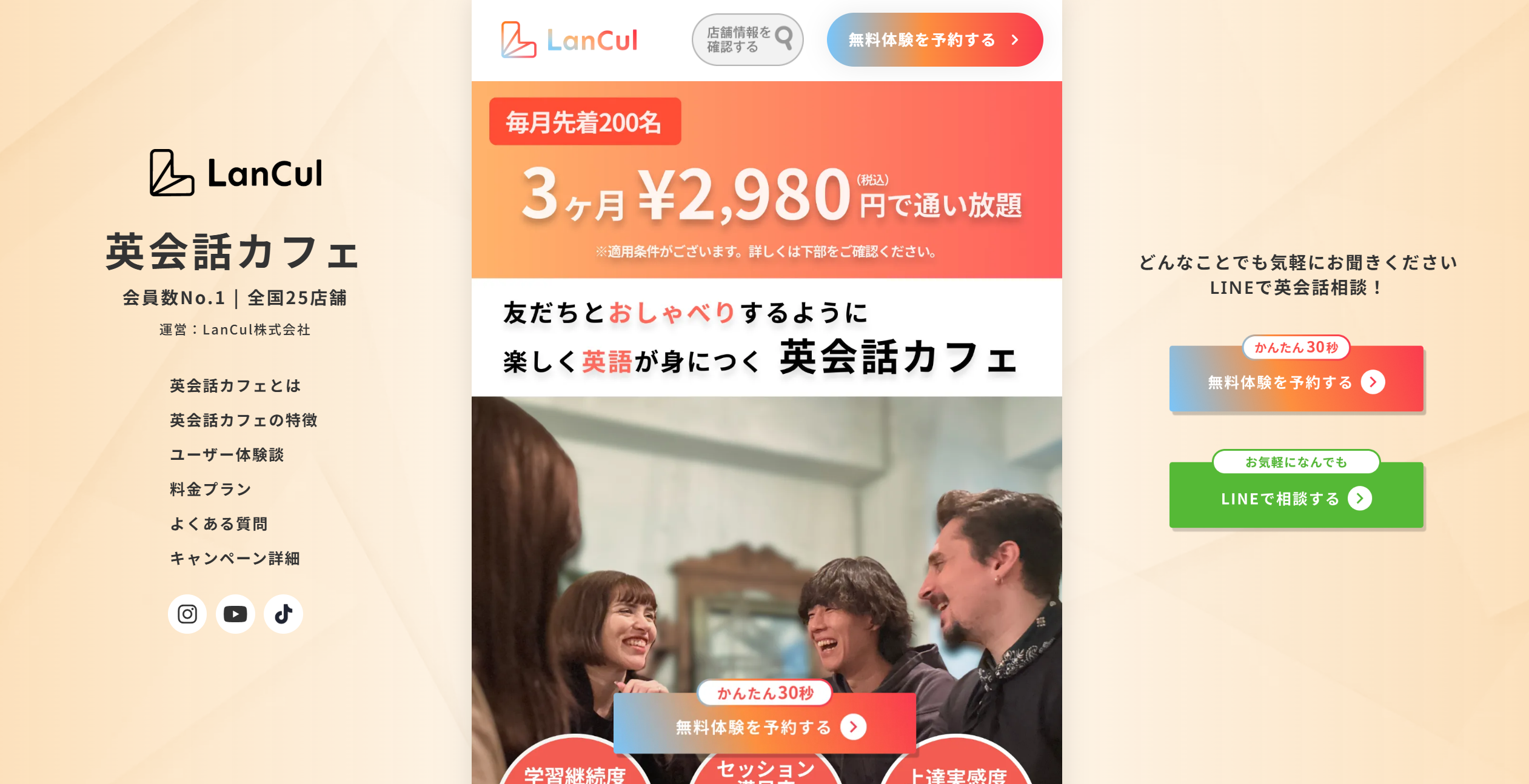 項目 | LanCul | ALPHA英会話カフェ&スクール |